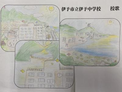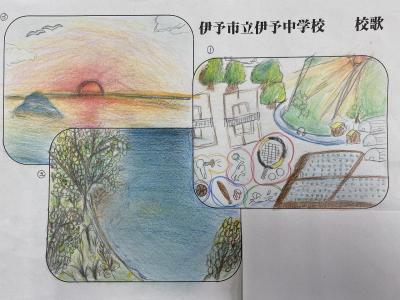 今回は1年生の音楽の授業で学習した「伊予中学校 校歌」を「絵」で表現してみました!